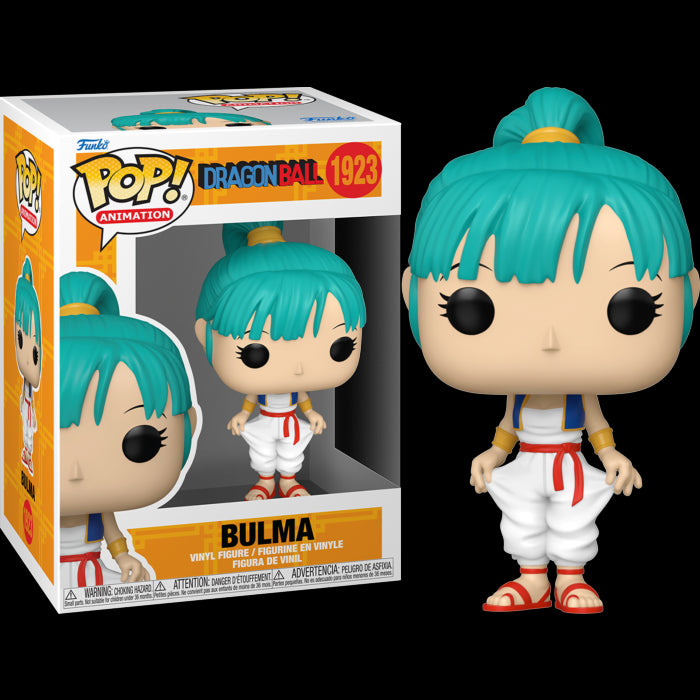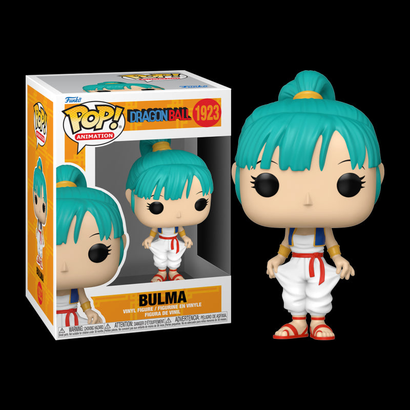 Bulma returns in Pop #1923, styled with tech accessories and confidence, highlighting her brilliance and early saga appearance as the original *Dragon Ball* heroine.