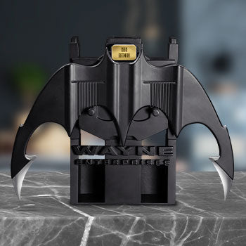 Herramienta letal: Batarang metálico Batman 1989 de Ikon Design Studio combina diseño clásico y funcionalidad icónica.
