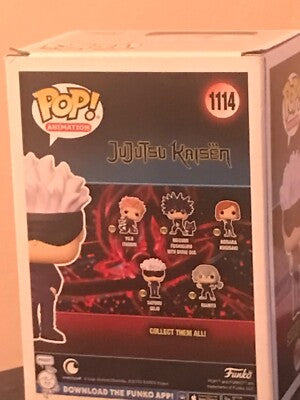 Satoru Gojo from *Jujutsu Kaisen* is immortalized in Funko Pop #1114 with blindfold and signature pose, exuding limitless power in compact stylized form.