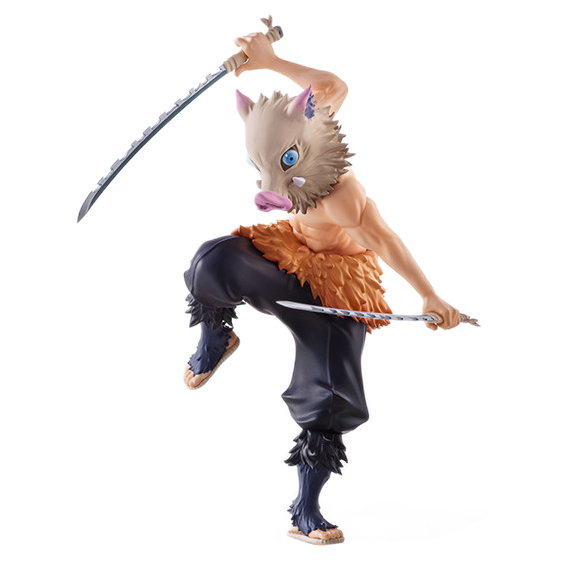 Inosuke Hashibira de Kimetsu no Yaiba ruge con fuerza salvaje en esta figura — una representación brutal y feroz del espadachín bestial.