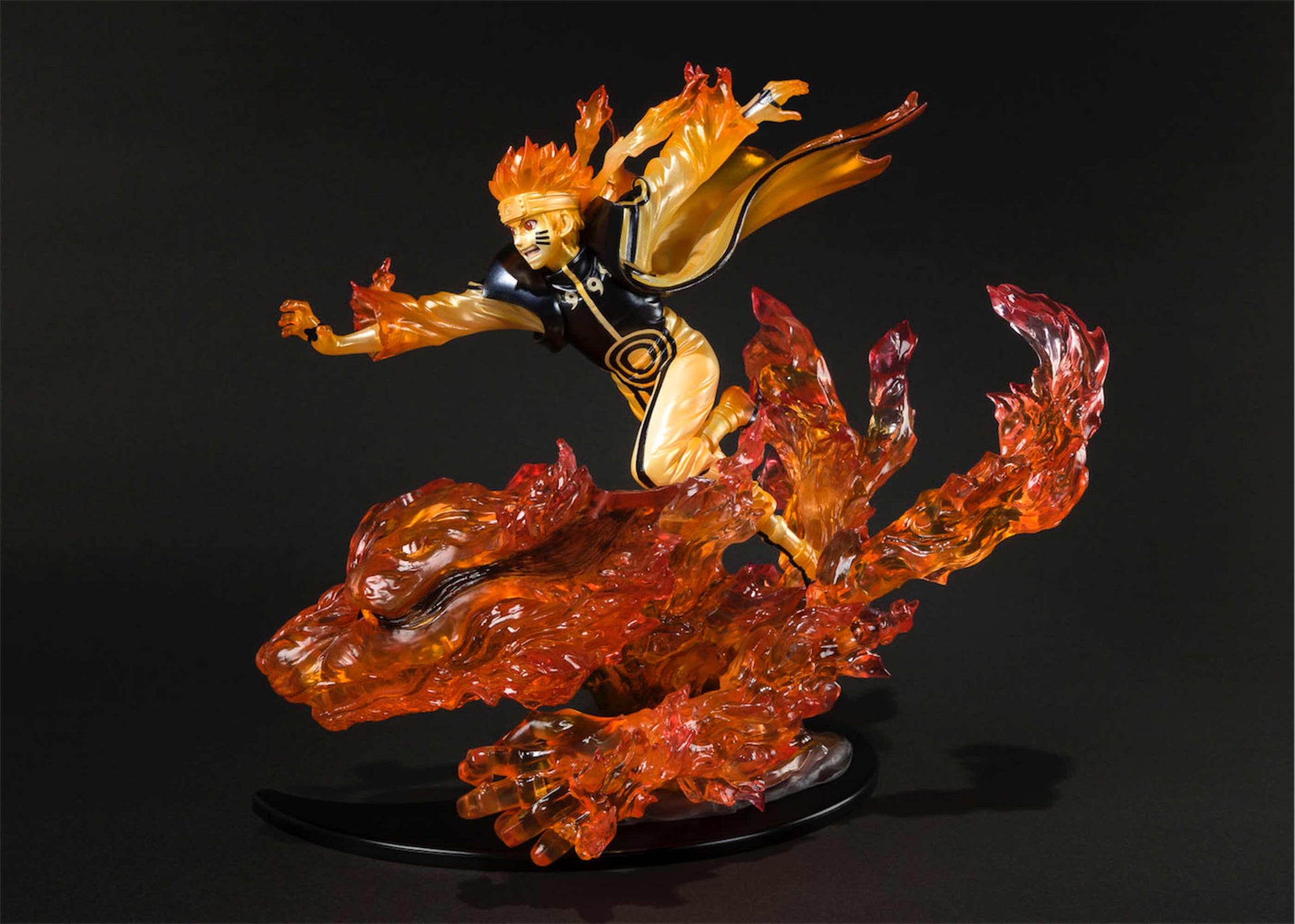 Figuarts Zero de Naruto Uzumaki con Kurama, de "Naruto Shippuden", es una impresionante representaci—n del protagonista en sinergia con el legendario Zorro de Nueve Colas. La figura muestra a Naruto en una pose din‡mica mientras canaliza el chakra de Kurama, rodeado de efectos translœcidos de energ’a que resaltan la intensidad y el poder del modo Kurama. El detalle es excepcional, desde el cabello alborotado de Naruto hasta la apariencia feroz de Kurama, con su distintivo pelaje anaranjado y ojos brillantes. Fabricada con materiales de alta calidad, la figura viene con una base decorativa que eleva el impacto visual, simbolizando el v’nculo inquebrantable entre Naruto y Kurama. Es una adici—n esencial para los fan‡ticos y coleccionistas, capturando uno de los momentos m‡s ic—nicos de la serie "Naruto Shippuden".
