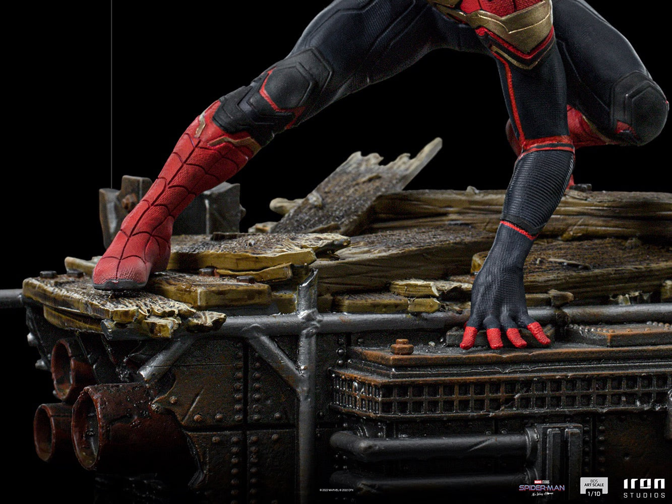 Although still a teenager, but already with great experience acting alongside the Avengers, the charismatic web-shooter-hero faces one of the darkest and most tragic moments of his life. To overcome his biggest challenge, facing villains from alternate worlds, he receives help from two older versions of himself, coming from these universes to help him rescue and heal the insanity of their enemies, and return with them to their respective original worlds. Using his refined and updated integrated/hybrid suit developed using Tony StarkÕs technology, in the blue, red, and black colors with golden details, the youngest Peter Parker, original from this world in the MCU universe, nicknamed among his alternate older ÒbrothersÓ as Peter-One, gets ready to jump for action on a pedestal formed of wood and metallic structures from a scaffold on the Liberty Island in New York, Iron Studios present the statue ÒSpider-Man Peter-One BDS - Spider-Man: No Way Home -Art Scale 1/10Ó, inspired by the movie on which the young actor completes his trilogy of movies in the role of this iconic hero from Marvel, part of Phase Four in the MCU. In a posthumous message, the villain Mysterio revealed to the world the identity of Peter Parker as Spider-Man and framed him for his murder. Suffering the consequences of this exposure, even though he was cleared of the charges by his attorney Matt Murdock, the young Parker seeks help from the sorcerer Dr. Strange that casts a spell to erase everyoneÕs memory of his double identity. When Parker starts to ask for changes to the spell, to allow those he loves to keep their memories, something goes wrong, and this corrupted spell brings villains from alternate realities that knew about Spider-ManÕs identity, opening portals from a multiverse. Therefore, the young hero has to face the threats of the Green Goblin (Norman Osborn), Doctor Octopus (Otto Octavius), and Sandman (Flint Marko), introduced in the trilogy of movies of the hero directed by Sam Raimi from 2002 to 2007, together with the reptilian Lizard (Dr. Curt Connors) and Electro (Max Dillon) that originated in the movies from 2012 and 2014, directed by Marc Webb, withdrawn from their universes right before their deaths. To help Peter, his best friend Ned Leeds discovers that he can open portals using the mystic Sling Rings from Dr. Strange, and while trying to locate him, Ned brings alternate versions of Parker from the villainsÕ universes, nicknamed Peter-Two (Played by Tobey Maguire) and Peter-Three (played by Andrew Garfield), they join Peter-One (played by Tom Holland) to heal the villainsÕ insanities and send them back to their respective universes. A huge event in the movie theaters, the movie gathers for the first time different versions of the character originated from distinct adaptations, bringing back the actors Willem Dafoe (Norman Osborn), Alfred Molina (Otto Octavius), Thomas Haden Church (Flint Marko), Rhys Ifans (Dr. Curt Connorts), and Jamie Foxx (Max Dillon) rerunning their roles from previous productions, just like Tobey Maguire and Andrew Garfield again as the friendly neighborhood arachnid hero. Revealed on the Inside Iron Studios show on YouTube, the statue can both compose a diorama set next to the statues Spider-Man Peter-Two e Spider-Man Peter-Three BDS - Spider-Man: No Way Home - Art Scale 1/10, individually available, as well as representing individually one of the iconic versions of the arachnid hero from the movies. They are all available for Pre-Order.